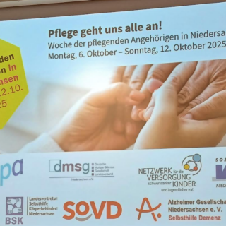 Vom 6. – 10. Oktober 2025 findet in ganz Niedersachsen die erste Woche der pflegenden Angehörigen statt. Warum ist es wichtig, den Blick auf die häusliche Pflege zu richten und auf die Bedürfnisse und Probleme der pflegenden Angehörigen aufmerksam zu machen? „Der Landespflegebericht 2024 zeigt, dass die Zahl der pflegebedürftigen Menschen von 2021 bis 2023 um 80.000 auf 623.000 angestiegen...