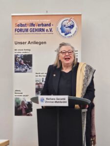 Am Vormittag der Mitgliederversammlung in Kassel fand ein Vortrag mit Lesung aus dem oben genannten Büchlein von Barbara Zimmer-Walbröhl statt. Die Idee zu diesem Büchlein hatte sie während eines Reha-Aufenthaltes in Bad Bevensen nach ihrem zweiten Schlaganfall. Dort beobachtete und fotografierte sie Fahrradfahrer und erstellte später davon Aquarelle. Sie war früher nicht nur Galeristin sondern auch Malerin.